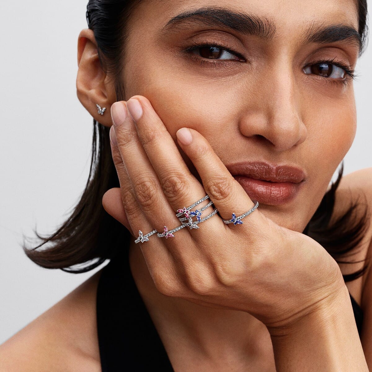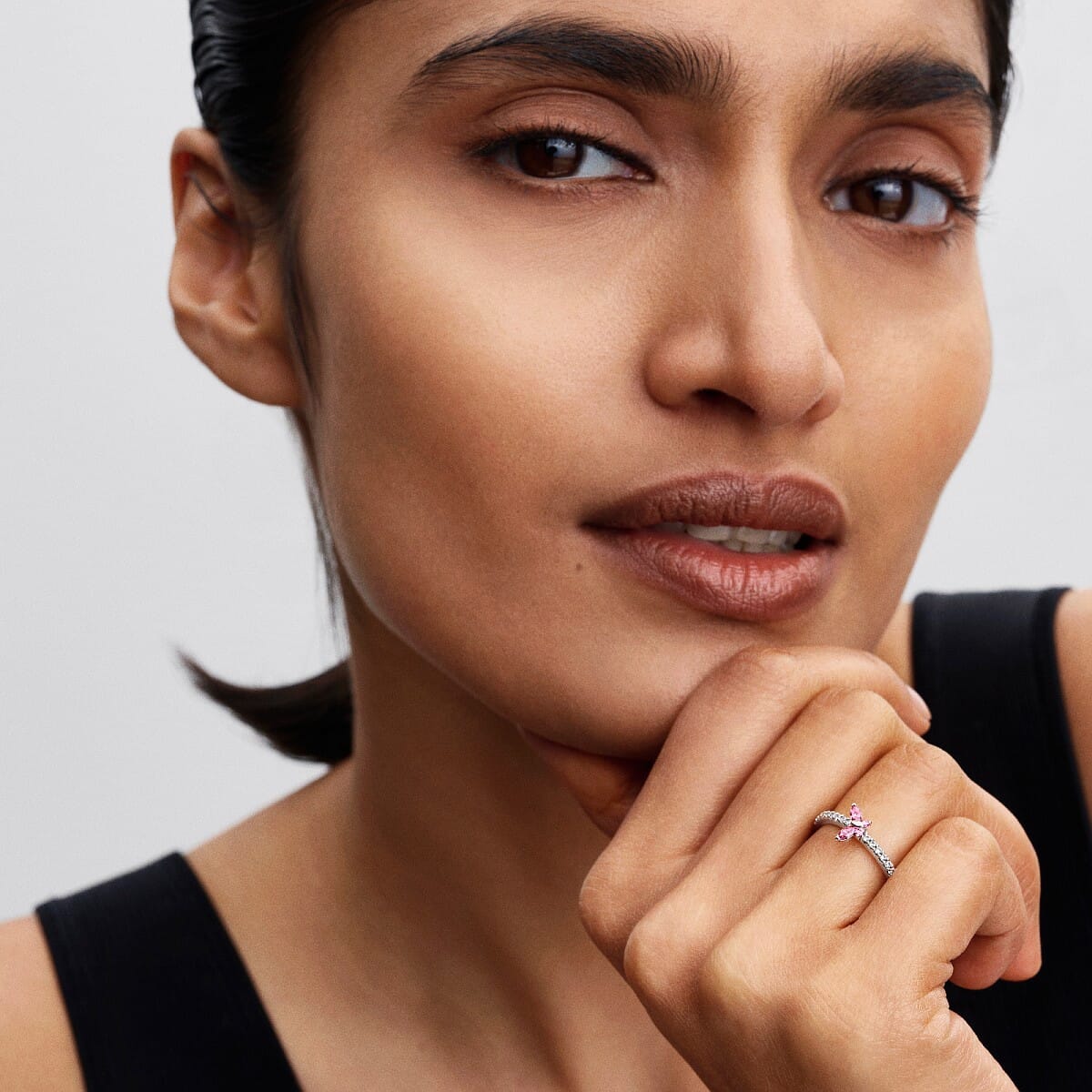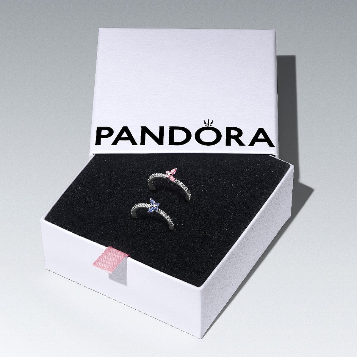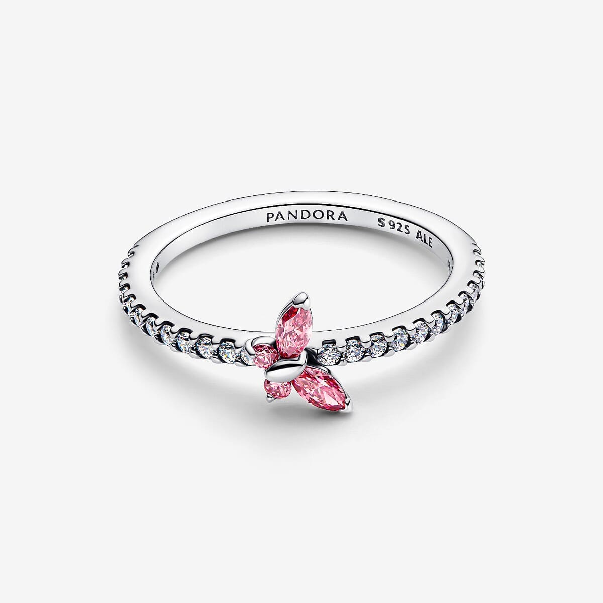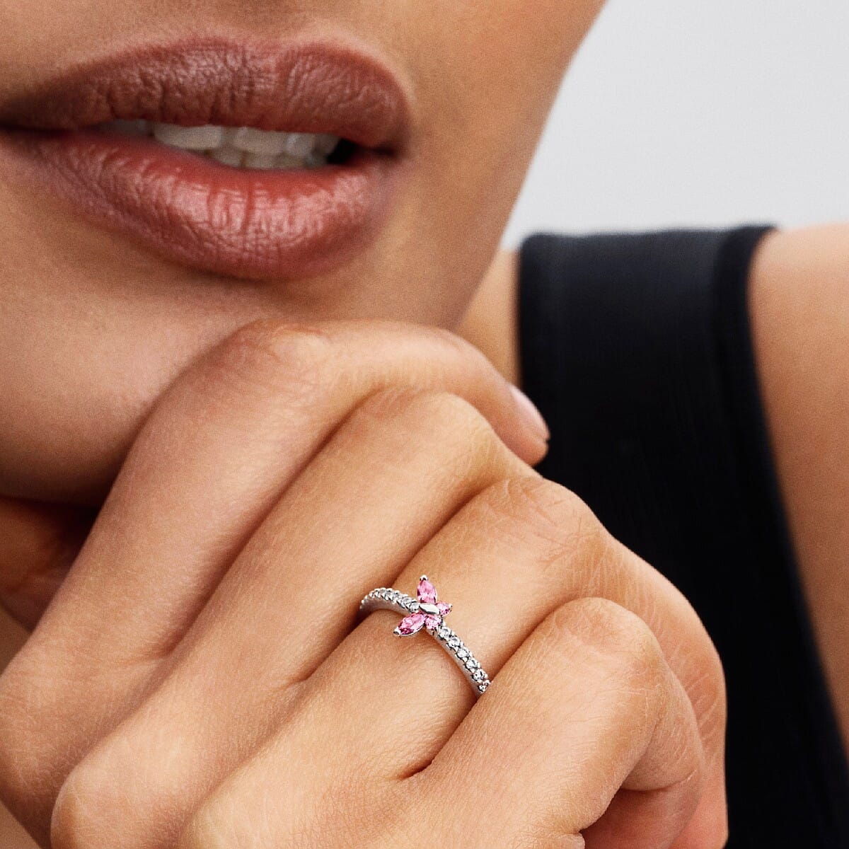 Anillo Pandora Ancho Mariposa Brillante Rosa