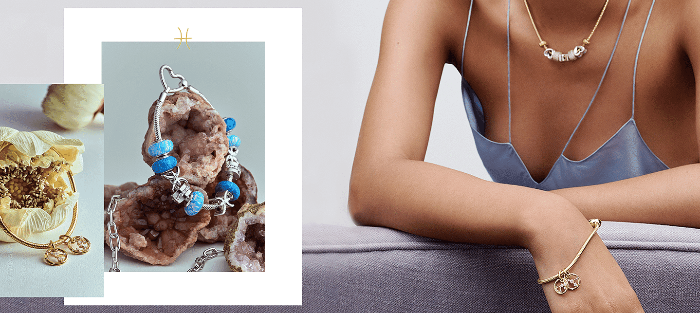 Todas las joyas de plata de ley están estampadas con una “S” mayúscula para la plata, seguida de la pureza expresada como partes de plata pura por mil: S925 (92,5% de plata pura). Todas las joyas de oro están estampadas con una "G" mayúscula para el oro, seguida de la pureza, expresada como partes de oro puro por mil en la aleación de oro: 14ct: G585 (58,5% de oro puro) o 18ct: G750 (75% de oro puro). Las joyas de Pandora Rose están hechas de una mezcla única de metales con un baño de oro rosa de 14 quilates y llevan un sello distintivo único "R" o "MET".