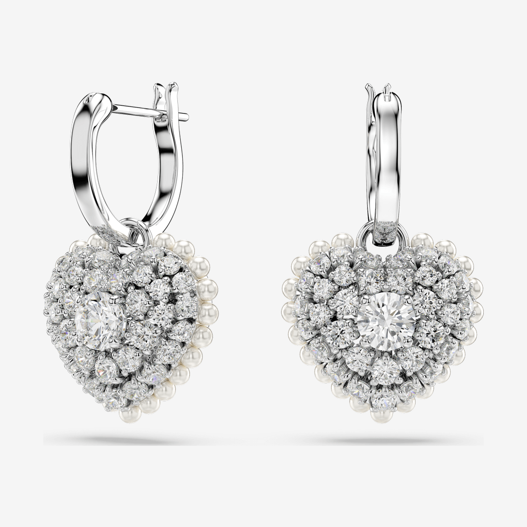 Un diseño romántico en forma de corazón, perfecto para regalar o autoregalarse. El brillo blanco y el baño en rodio combinado con las perlas, lo convierten en un pendiente más elegante y delicado de la colección.