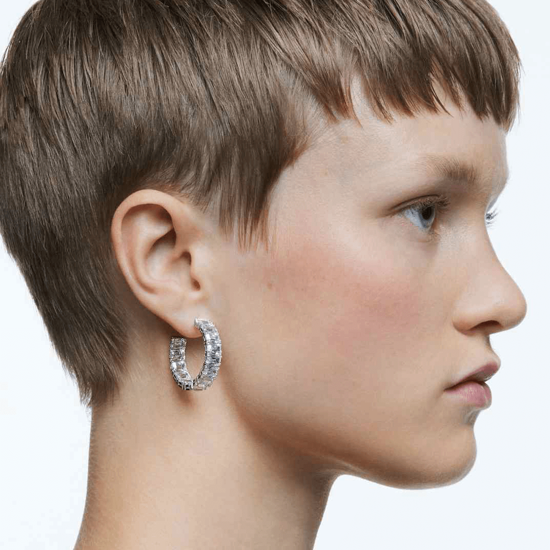 Pendientes de aro Matrix Swarovski Bañados en Rodio