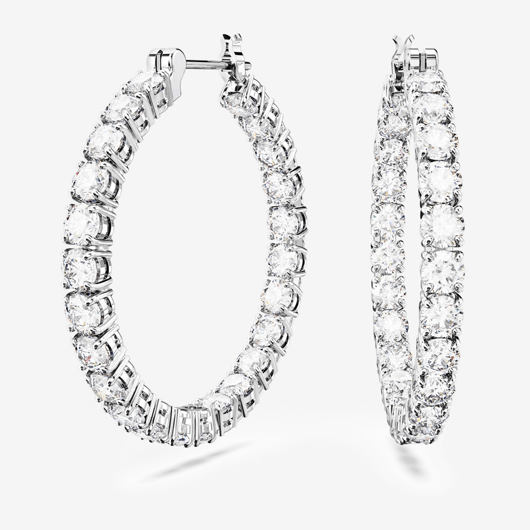 Un diseño elegante que combina la forma icónica del aro con el brillo inconfundible de los cristales Swarovski. Perfectos para elevar un look de noche.