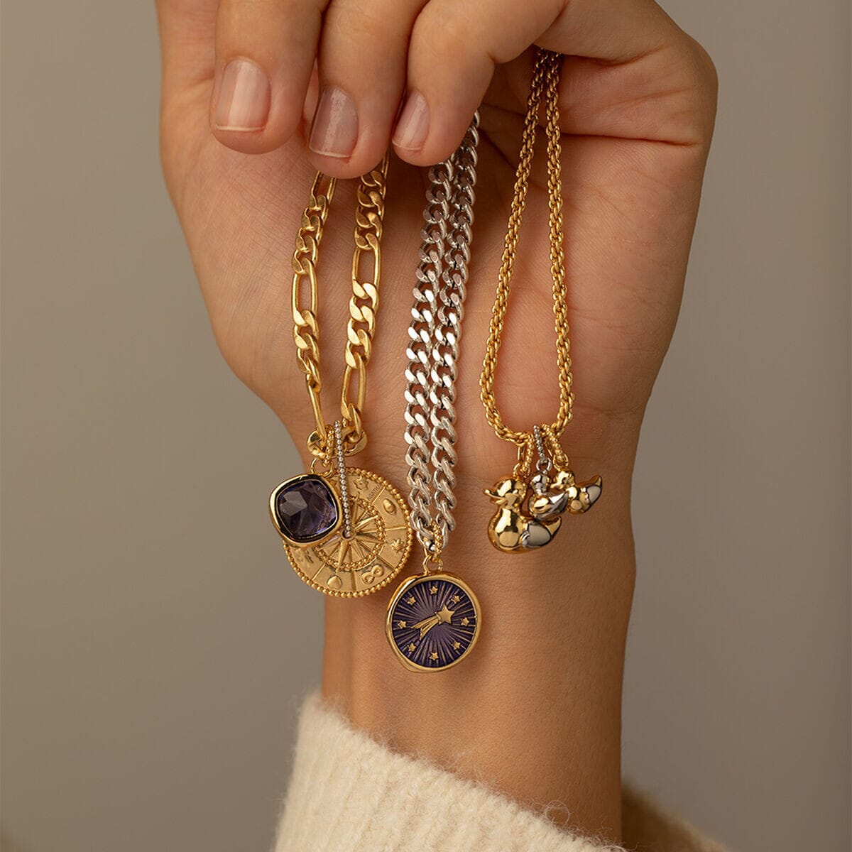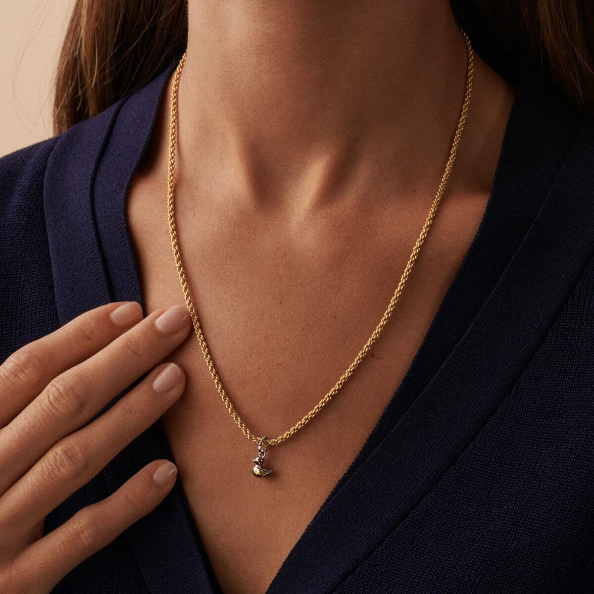 Un amuleto que representa la gran aventura de la vida que es tener hijos.Los patitos siempre están cerca del calor y la protección de su mamá pata.Acumula tantos patitos como quieras y luce a tu tribu con orgullo. Crea tu collar personalizado con los amuletos de moda de la nueva colección de Maria Pombo X AGATHA. Joya acabada en oro y rodio.