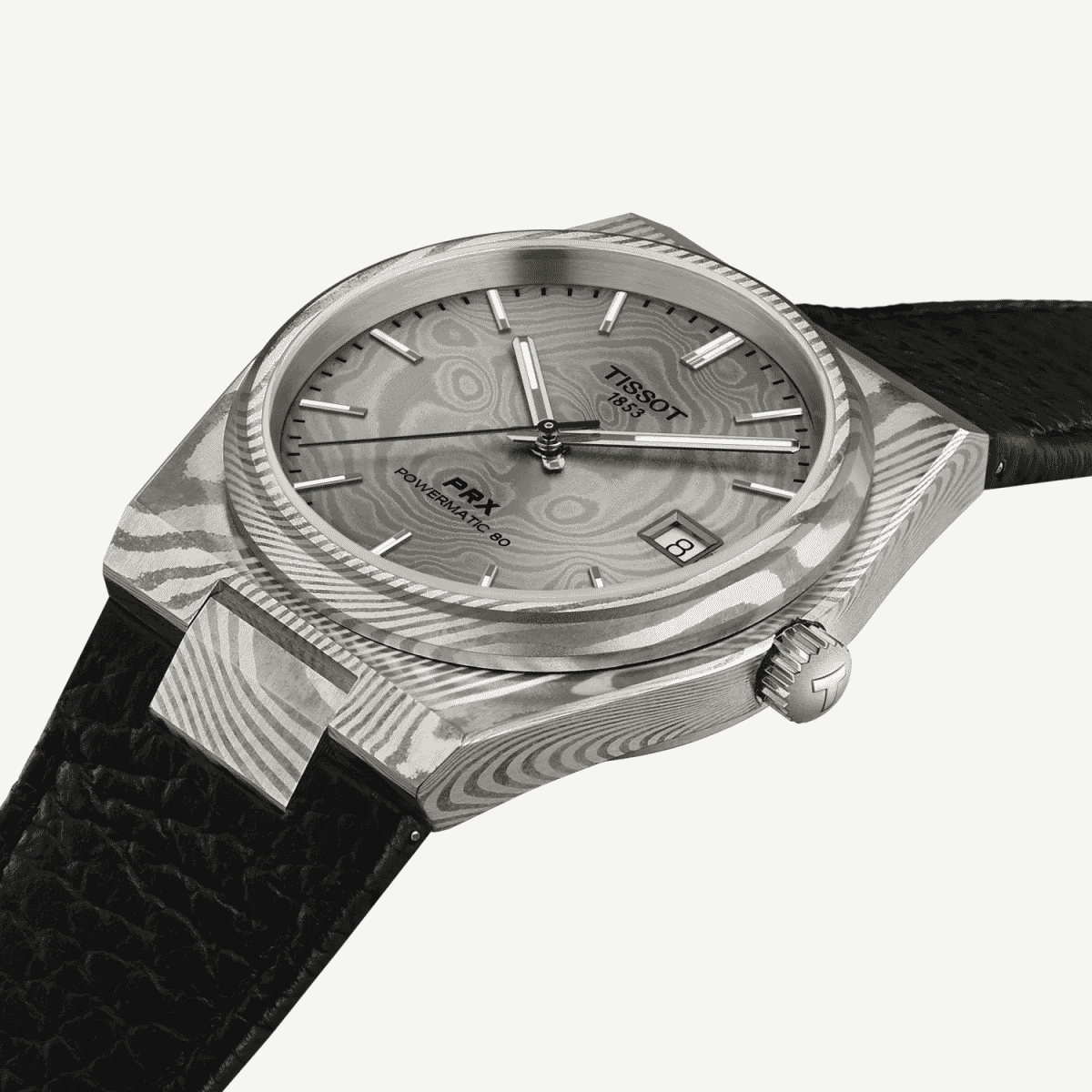 El Tissot PRX Acero Damasco de 38mm es una reinterpretación moderna de un clásico de los años 70. Este reloj combina la elegancia atemporal con materiales innovadores. Su caja de acero inoxidable Damasco jaspeado le confiere un aspecto único y sofisticado. Equipado con un movimiento automático Powermatic 80, ofrece una reserva de marcha de hasta 80 horas y una precisión excepcional gracias a su espiral Nivachron. La correa de piel negra con sistema de fácil apertura complementa su diseño, haciendo de este Tissot PRX una pieza imprescindible para los amantes de la relojería.